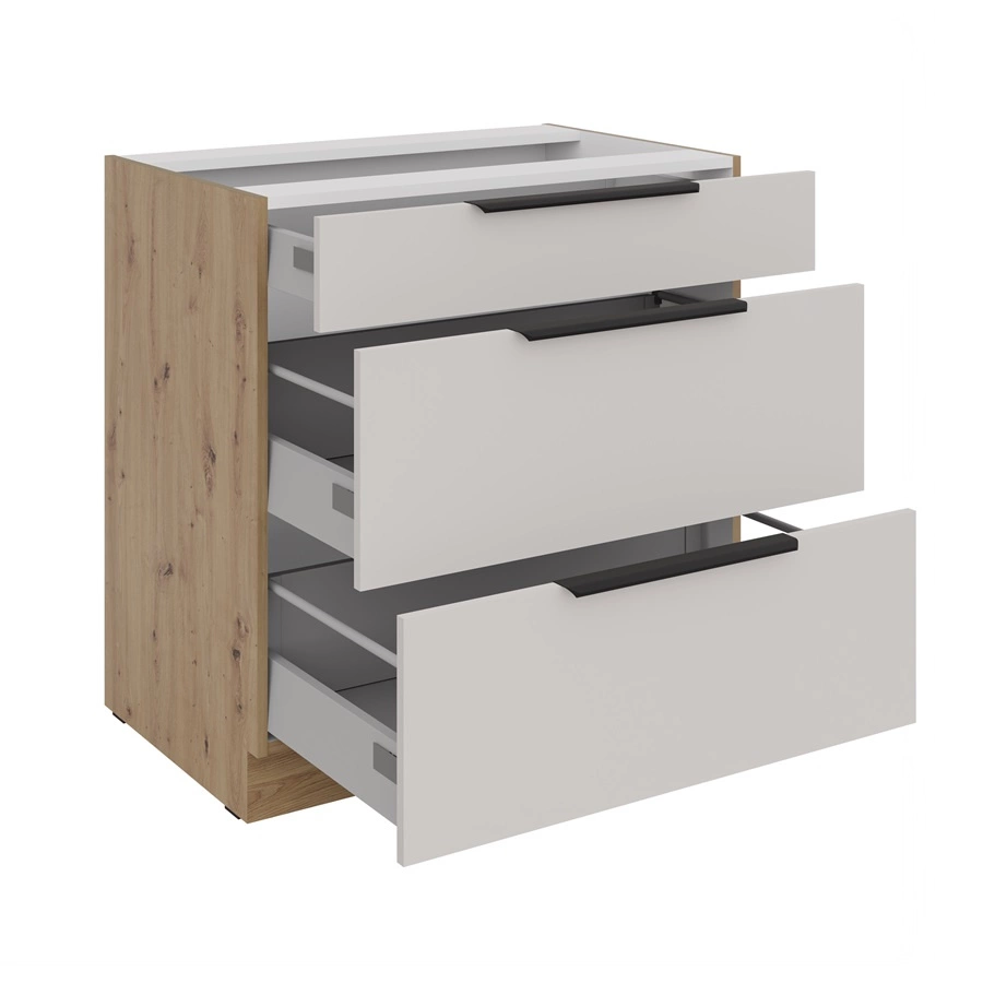 Szafka kuchenna stojąca z szufladami Soela 80 D 3S BB metalowe uchwyty krawędziowe szafka odporna na działanie wilgoci i uszkodzenia