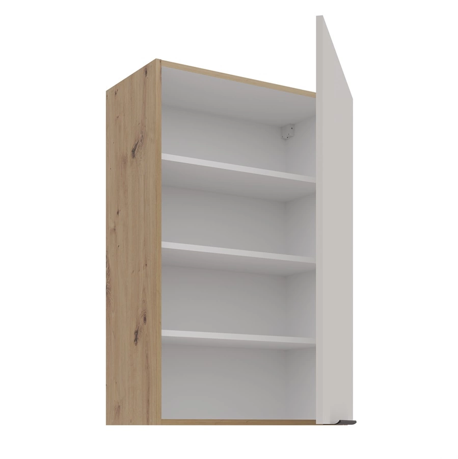 Szafka kuchenna wisząca Soela w kolorze dąb artisan / beżowy należy do kategorii mebli kuchennych modułowych, z których można utworzyć dowolne zestawy.