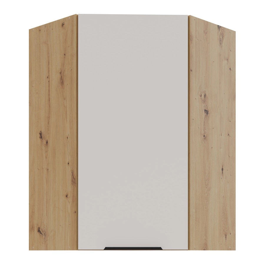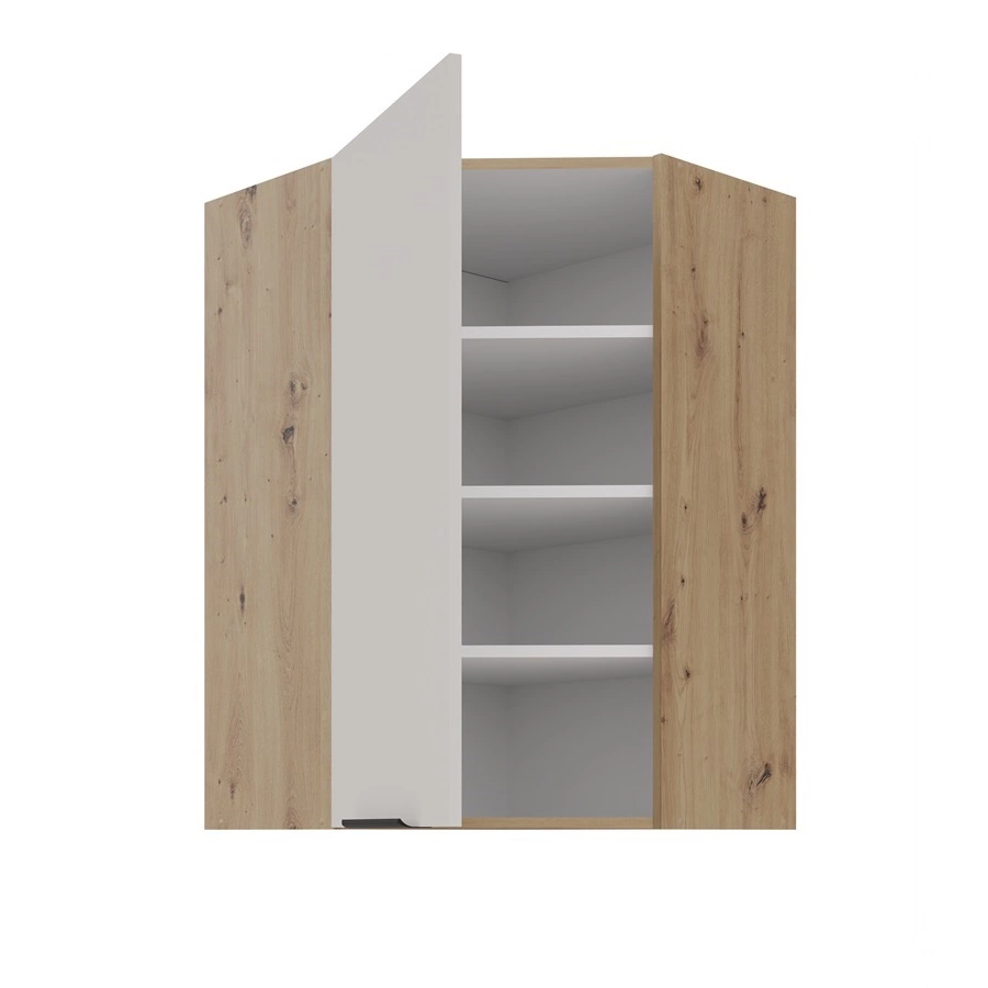 Szafka kuchenna narożna wisząca Soela w kolorze dąb artisan / beżowy należy do kategorii mebli kuchennych modułowych, z których można utworzyć dowolne zestawy.
