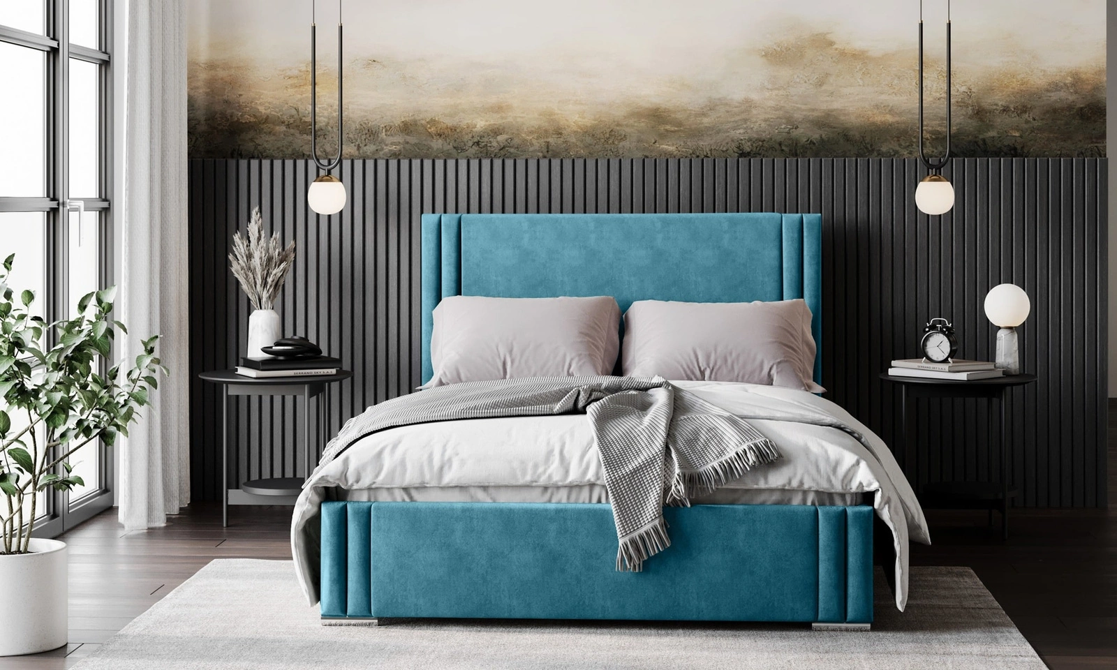 Łóżko tapicerowane Tatui 160x200 turkusowe stylowe łóżko z pojemnikiem na pościel wygodny zagłówek zachwyca eleganckim designem