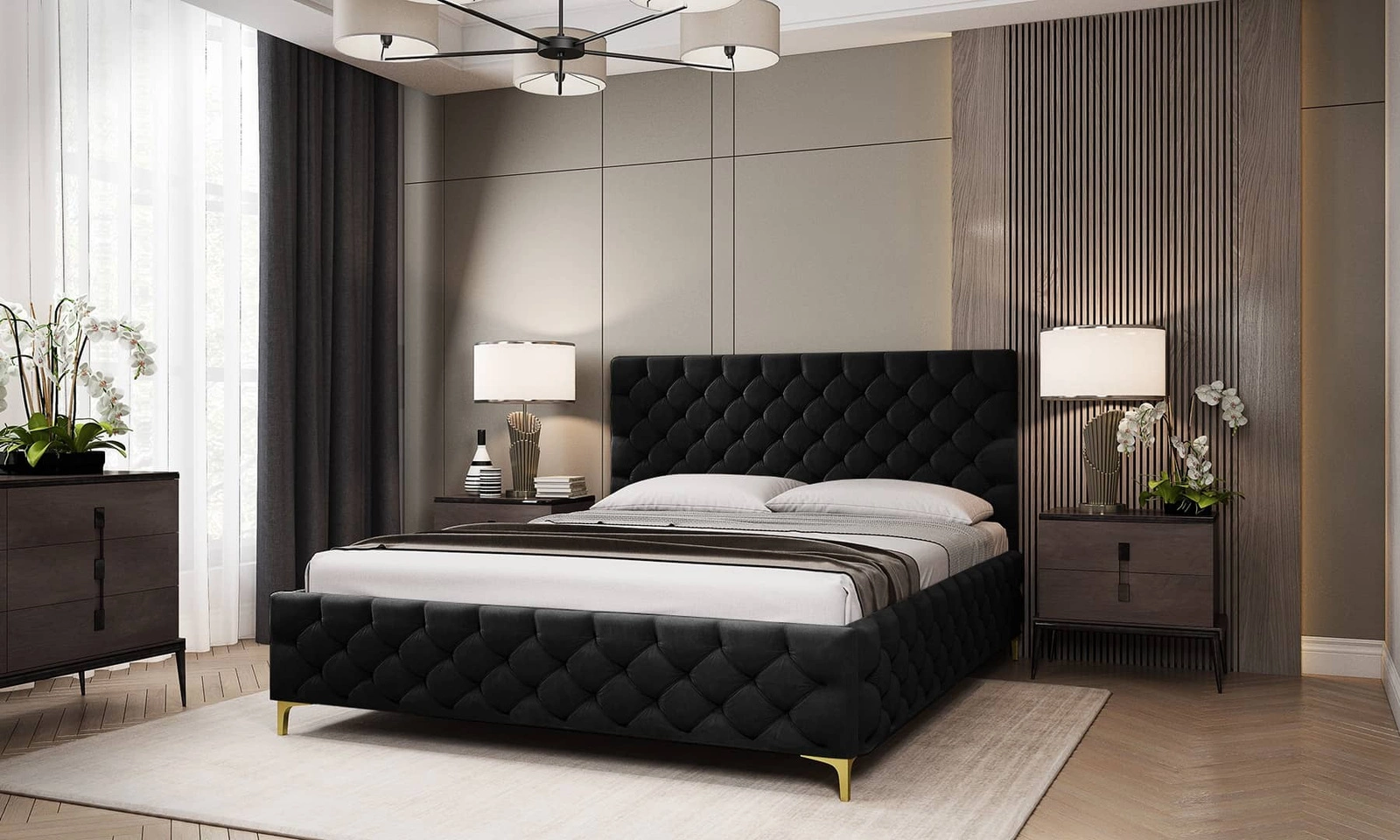 Łóżko tapicerowane Fiano 180x200 w kolorze czarnym to idealne rozwiązanie do sypialni urządzonej w stylu nowoczesnym, skandynawskim oraz klasycznym.