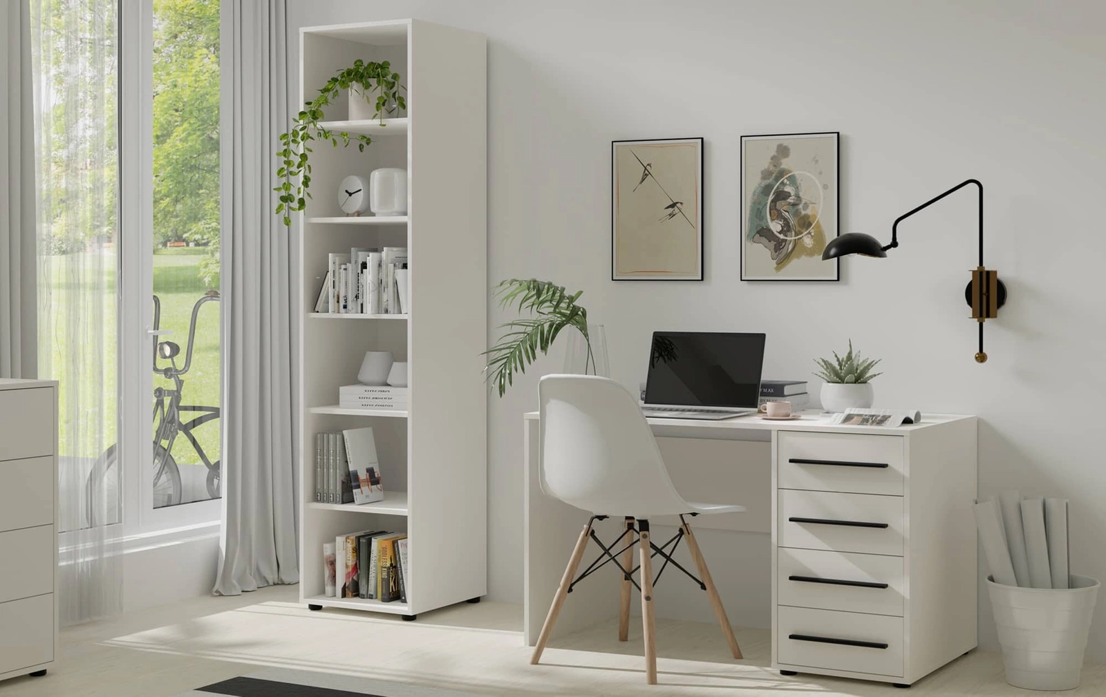 Regał Maxione 45 cm biały funkcjonalny regał na książki idealny do aranżacji pokoju nastolatka lub biura prosta i uniwersalna bryła