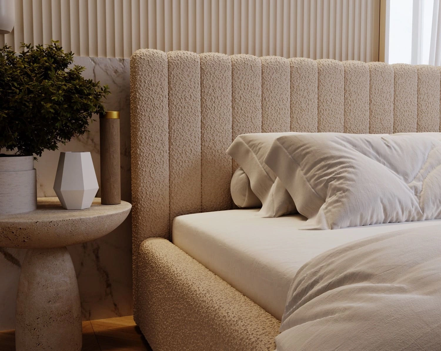 Łóżko tapicerowane Naomi 140x200 w kolorze jasny beż to idealne rozwiązanie do sypialni urządzonej w stylu nowoczesnym, skandynawskim oraz klasycznym.