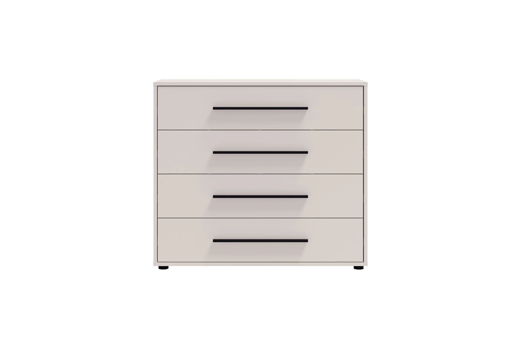 Komoda jest skonstruowana z 4 szuflad. Komoda gwarantuje komfortowe i bezproblemowe korzystanie oraz trwałość całego mebla przez wiele lat użytkowania. Beżowy kolor w kaszmirowym odcieniu nada pomieszczeniu lekkości i przytulnego klimatu, dzięki czemu komoda z szufladami Maxione świetnie sprawdzi się w roli komody do salonu o oryginalnym wykończeniu, komody do pokoju dziennego lub komody do sypialni w nowoczesnym stylu. Komoda z szufladami z powodzeniem odnajdzie się także jako mebel biurowy