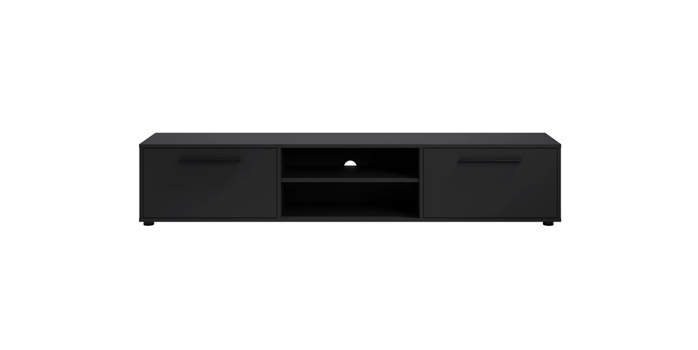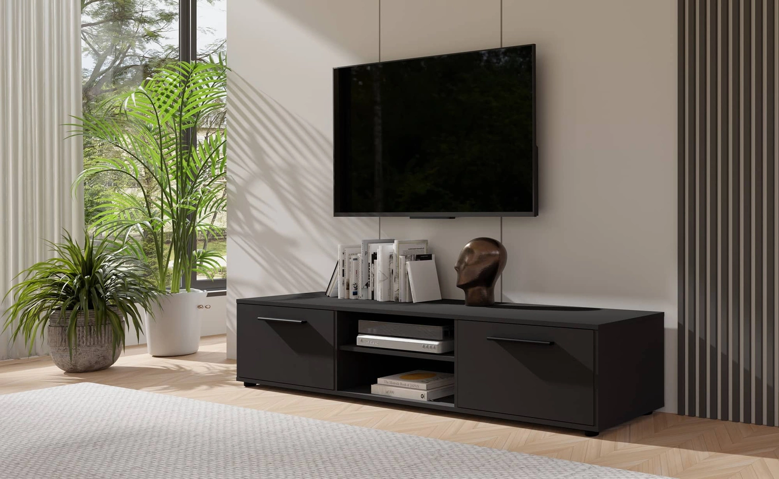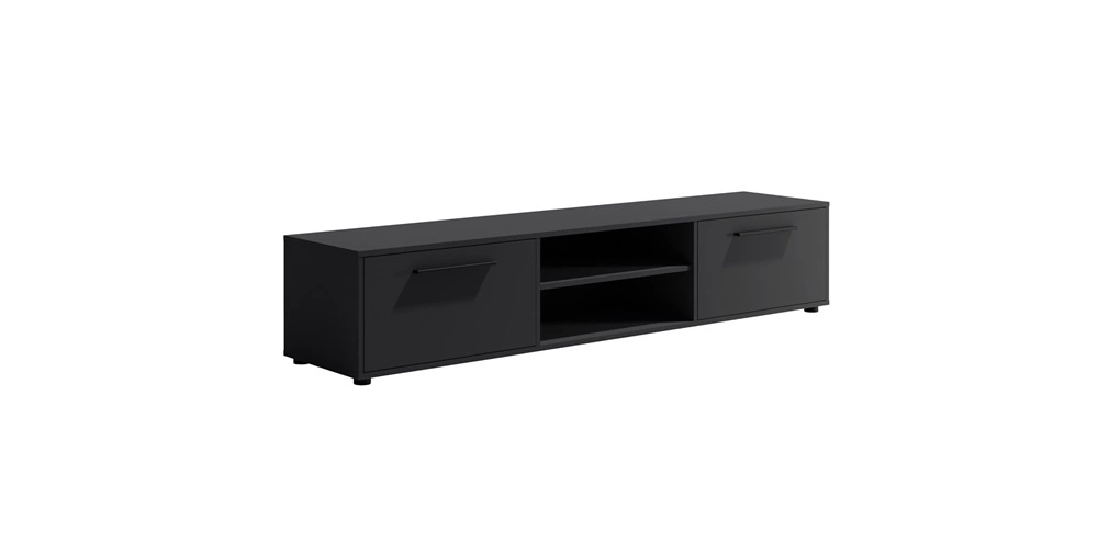 Szafka RTV Maxione 190 cm w kolorze czarnym to idealne dopełnienie każdego salonu lub pokoju dziennego.