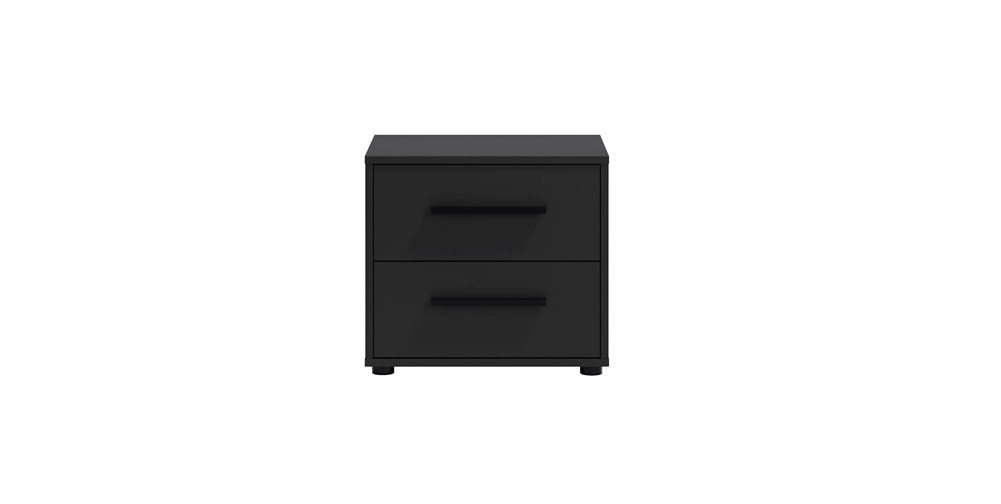 Szafka nocna jest skonstruowana z 2 szuflad. Szafka nocna gwarantuje komfortowe i bezproblemowe korzystanie oraz trwałość całego mebla przez wiele lat użytkowania. Klasyczna czerń nada pomieszczeniu elegancji i szczególnego charakteru, dzięki czemu szafki nocne do sypialni z kolekcji Maxione sprawdzą się także jako szafka nocna dla dziecka lub dla nastolatka.