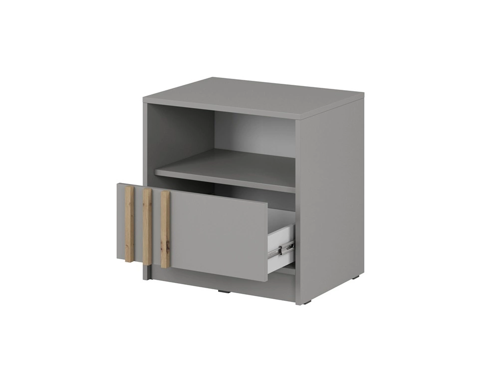 Szafka nocna z szufladą Aspen szara / lamele w kolorze dąb artisan stylowa szafka nocna stanowi idealny dodatek do sypialni