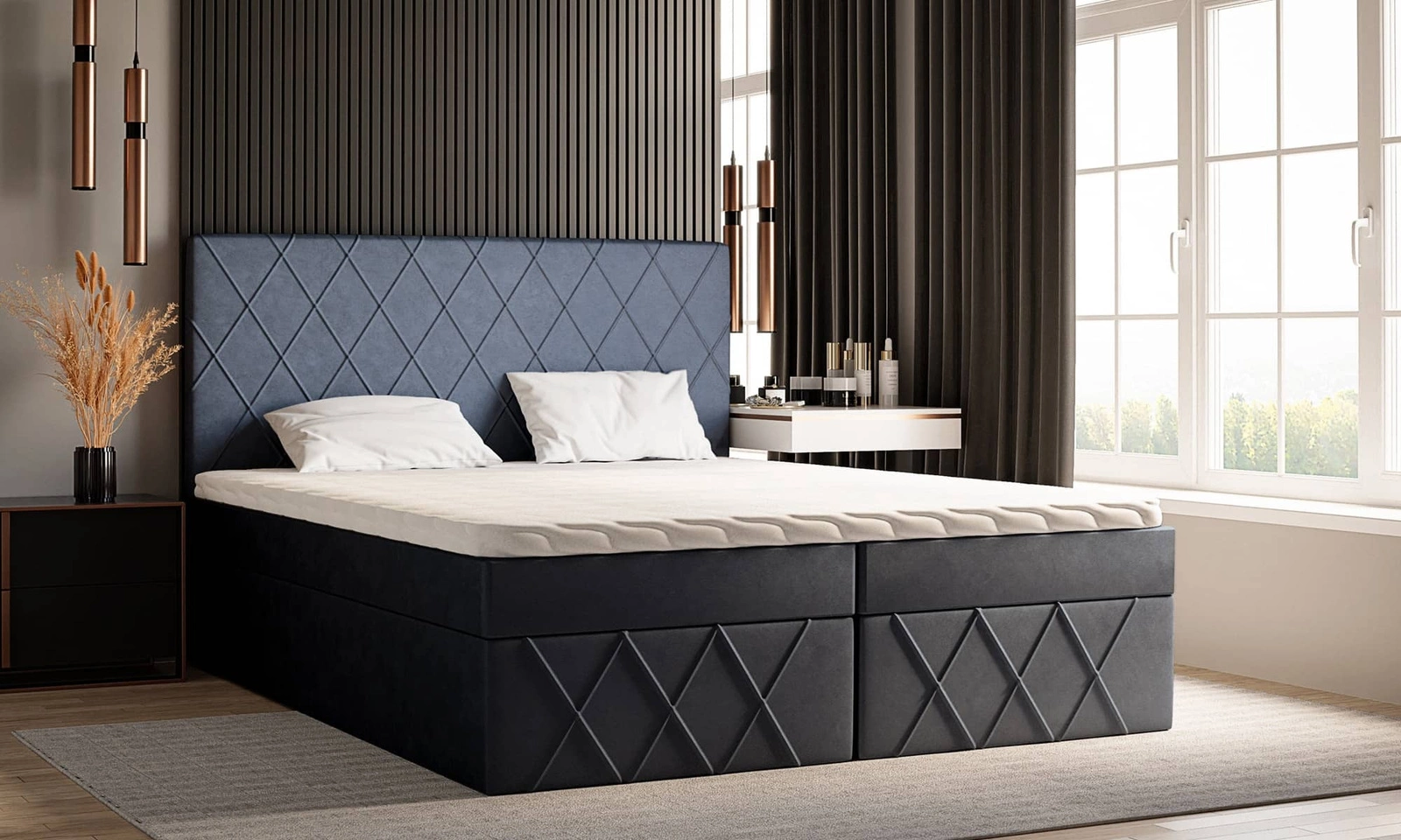Łóżko wykonane z tkaniny typu velvet Amor Velvet 4321 gwarantuje najwyższy komfort i funkcjonalność podczas codziennego wypoczynku w sypialni. Tkanina posiada powłokę hydrofobową, co gwarantuje ograniczone wchłanianie cieczy. Tkanina wykazuje także wysoką odporność na płowienie co idealnie sprawdza się przy bardzo nasłonecznionych aranżacjach wnętrz. Niezwykle miękki, gładki materiał obiciowy Amor Velvet wyróżnia przyjemna i aksamitna w dotyku powierzchnia. Dzięki wszystkim właściwościom użytej tkaniny, łóżko na długo zachowa swój pierwotny wygląd. Konstrukcja łóżka zapewnia dużą stabilność i wygodę użytkowania. Rama łóżka kontynentalnego jest wykonana z drewna oraz płyty meblowej. Delikatnie przeszycia na wezgłowiu i ramie łóżka przyciągą wzrok i nadają łóżku szczególnego charakteru.