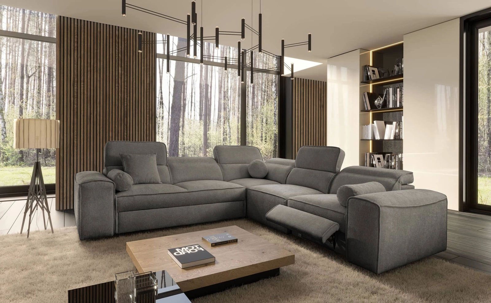 Narożnik Viano III Lux w kolorze szarym z wysuwanym podnóżkiem to ciekawie prezentujący się mebel o eleganckim wykończeniu.