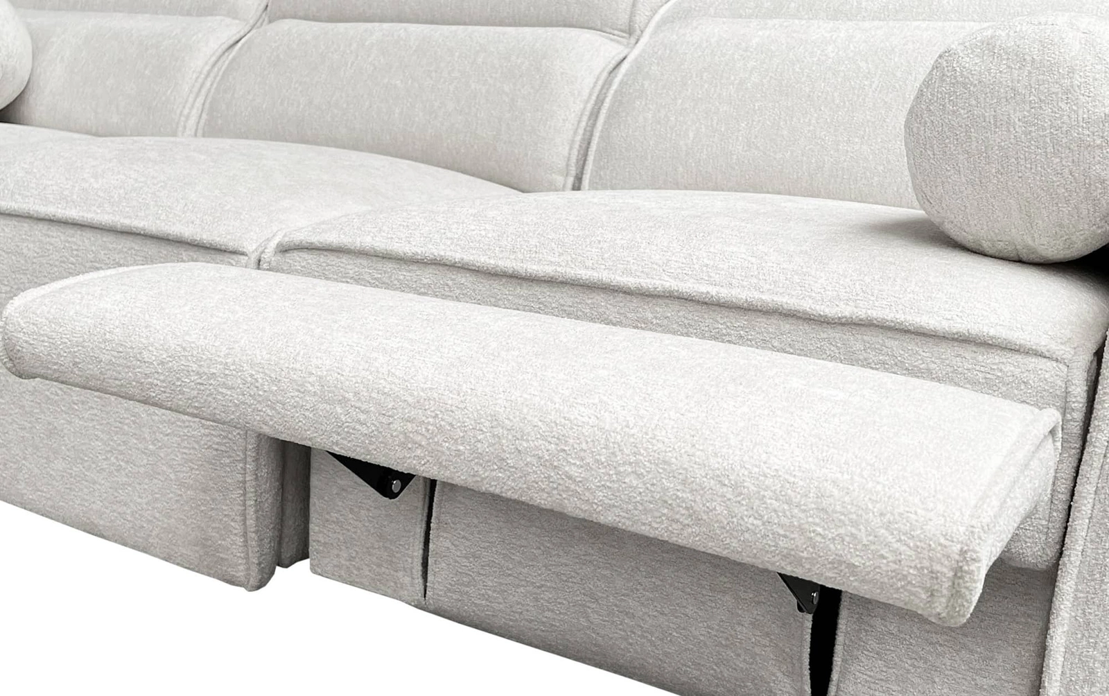 Detal narożnika z wysuwanym podnóżkiem Nowoczesny narożnik do pokoju dziennego