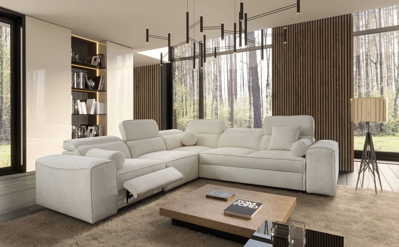 Narożnik Viano III Lux w kolorze kremowym z wysuwanym podnóżkiem to ciekawie prezentujący się mebel o eleganckim wykończeniu.