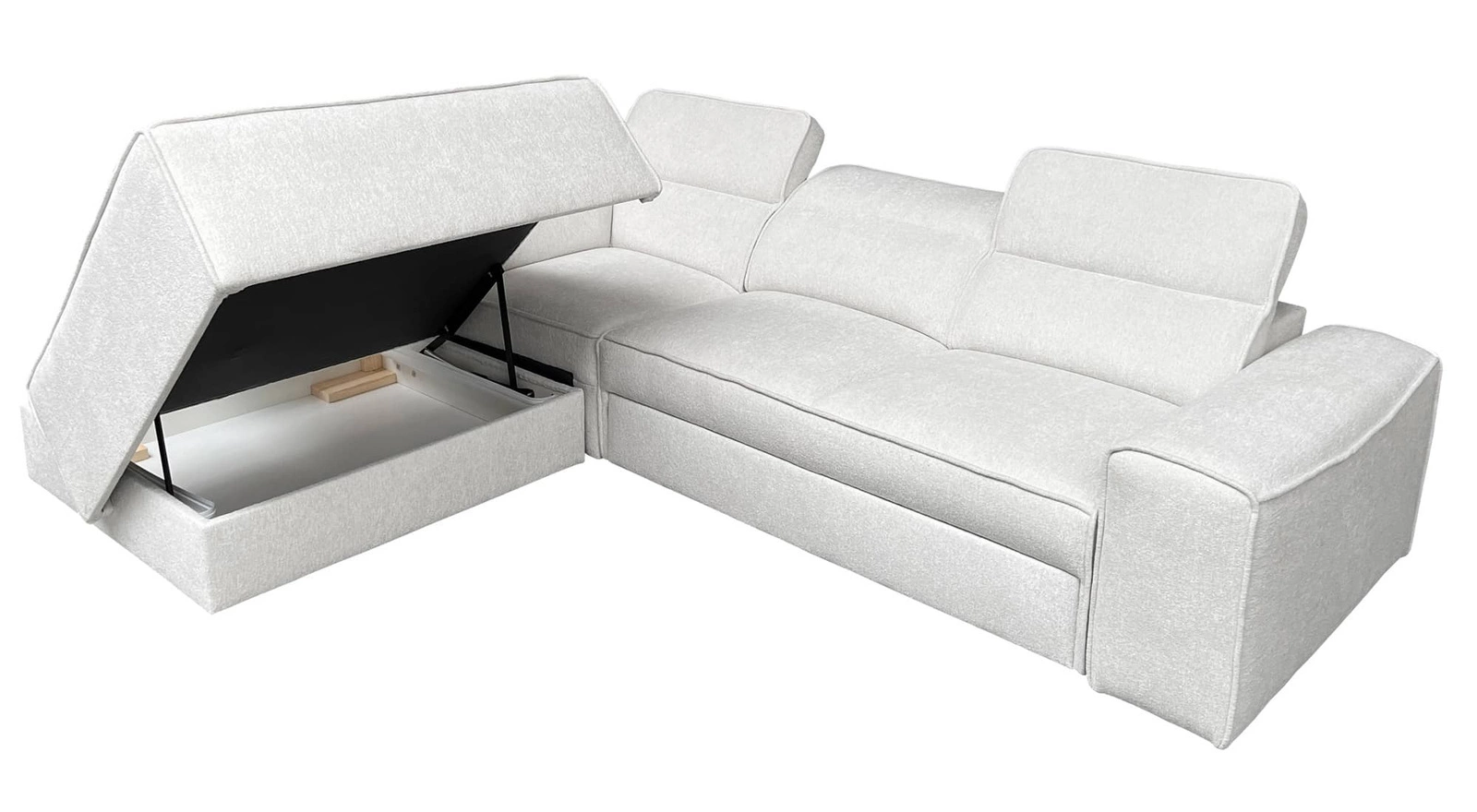 Narożnik z pojemnikiem na pościel Nowoczesny narożnik rozkładany