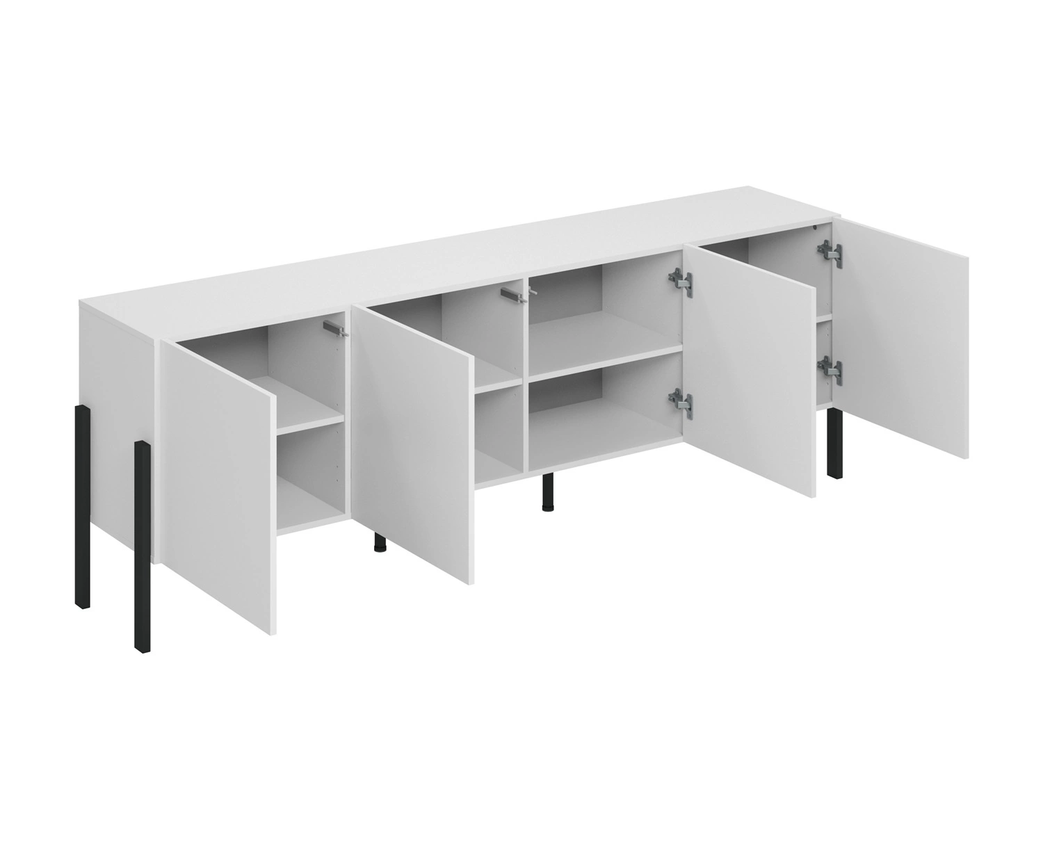 Zestaw mebli do salonu Jukon biały elegancka forma mebla w nowoczesnym stylu system otwierania push to open metalowe czarne nogi