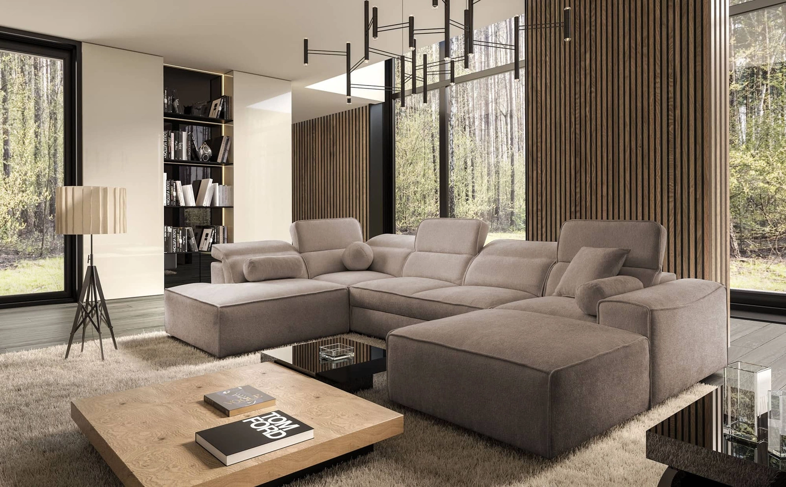 Narożnik z funkcją spania Viano VI wyróżnia się niezwykłą uniwersalnością, dzięki czemu doskonale sprawdzi się w wielu aranżacjach wnętrz. Elastyczność bryły oraz designerskie dodatki pozwalają na dopasowanie narożnika do różnych stylów aranżacyjnych, od klasycznych, po nowoczesne. Oryginalna konstrukcja narożnika pokryta została tkaniną typu szenil Toro 50. Narożnik charakteryzuje się nietuzinkowym wyglądem podkreślonym prostym kształtem, miękkim i wygodnym siedziskiem oraz wysoką jakością wykonania. Gładkie wykończenie całej konstrukcji sprawia, że kompozycja narożnika jest spójna, zamknięta w minimalistycznym tonie. Ozdobne poduszki zapewnią jeszcze większy komfort i wygodę użytkowania narożnika. Nowoczesne wzornictwo narożnika oraz bogata gama barw umożliwia swobodne kreowanie przestrzeni, oferując wybór zarówno stonowanych, eleganckich tonacji, jak i bardziej wyrazistych, odważnych kolorów, które wprowadzą życie do każdego pomieszczenia.