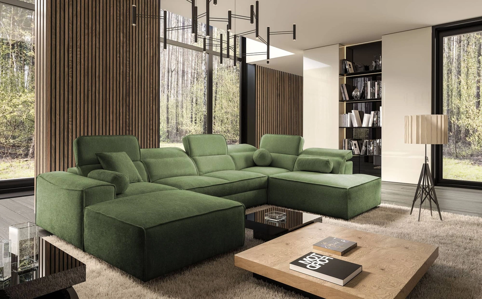 Narożnik Viano VI w kolorze zielonym to ciekawie prezentujący się mebel o eleganckim wykończeniu.
