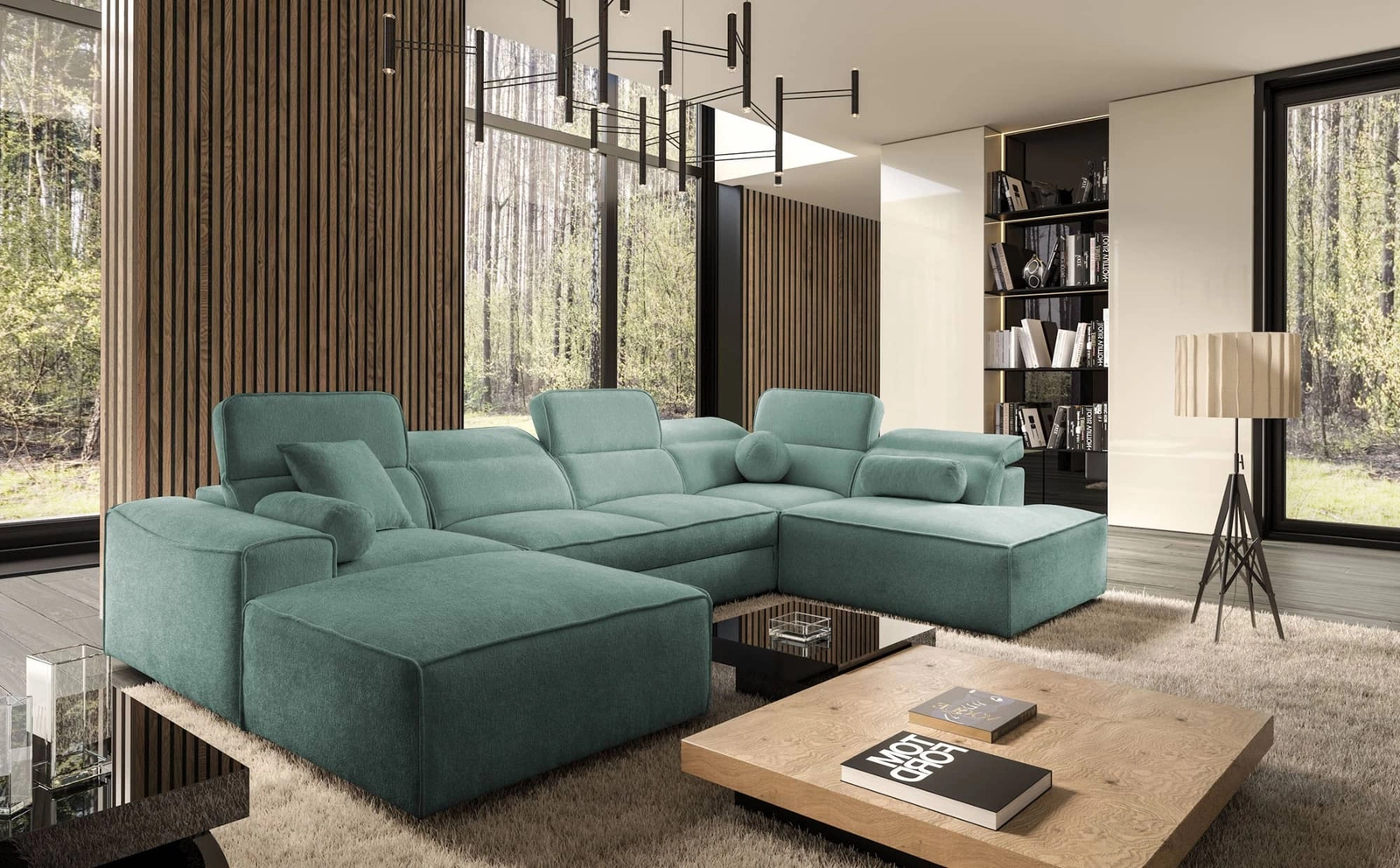 Dodatki tego mebla, które docenią wszyscy użytkownicy to dwa pojemniki na pościel, regulowane zagłówki, szerokie podłokietniki oraz poduszki ozdobne w różnych kształtach.