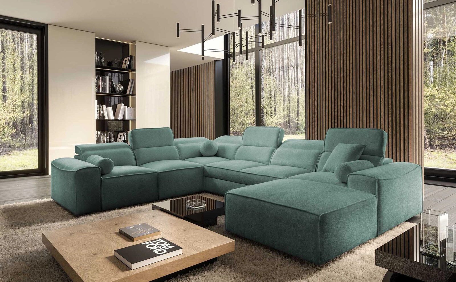 Narożnik z funkcją spania Viano VIII wyróżnia się niezwykłą uniwersalnością, dzięki czemu doskonale sprawdzi się w wielu aranżacjach wnętrz. Elastyczność bryły oraz designerskie dodatki pozwalają na dopasowanie narożnika do różnych stylów aranżacyjnych, od klasycznych, po nowoczesne. Oryginalna konstrukcja narożnika pokryta została tkaniną typu szenil Toro 100. Narożnik charakteryzuje się nietuzinkowym wyglądem podkreślonym prostym kształtem, miękkim i wygodnym siedziskiem oraz wysoką jakością wykonania. Gładkie wykończenie całej konstrukcji sprawia, że kompozycja narożnika jest spójna, zamknięta w minimalistycznym tonie. Ozdobne poduszki zapewnią jeszcze większy komfort i wygodę użytkowania narożnika. Nowoczesne wzornictwo narożnika oraz bogata gama barw umożliwia swobodne kreowanie przestrzeni, oferując wybór zarówno stonowanych, eleganckich tonacji, jak i bardziej wyrazistych, odważnych kolorów, które wprowadzą życie do każdego pomieszczenia.