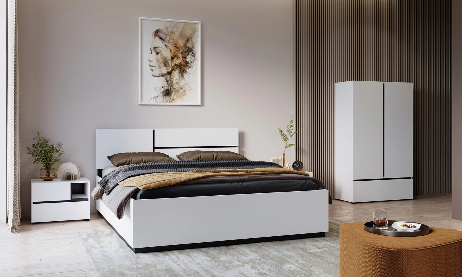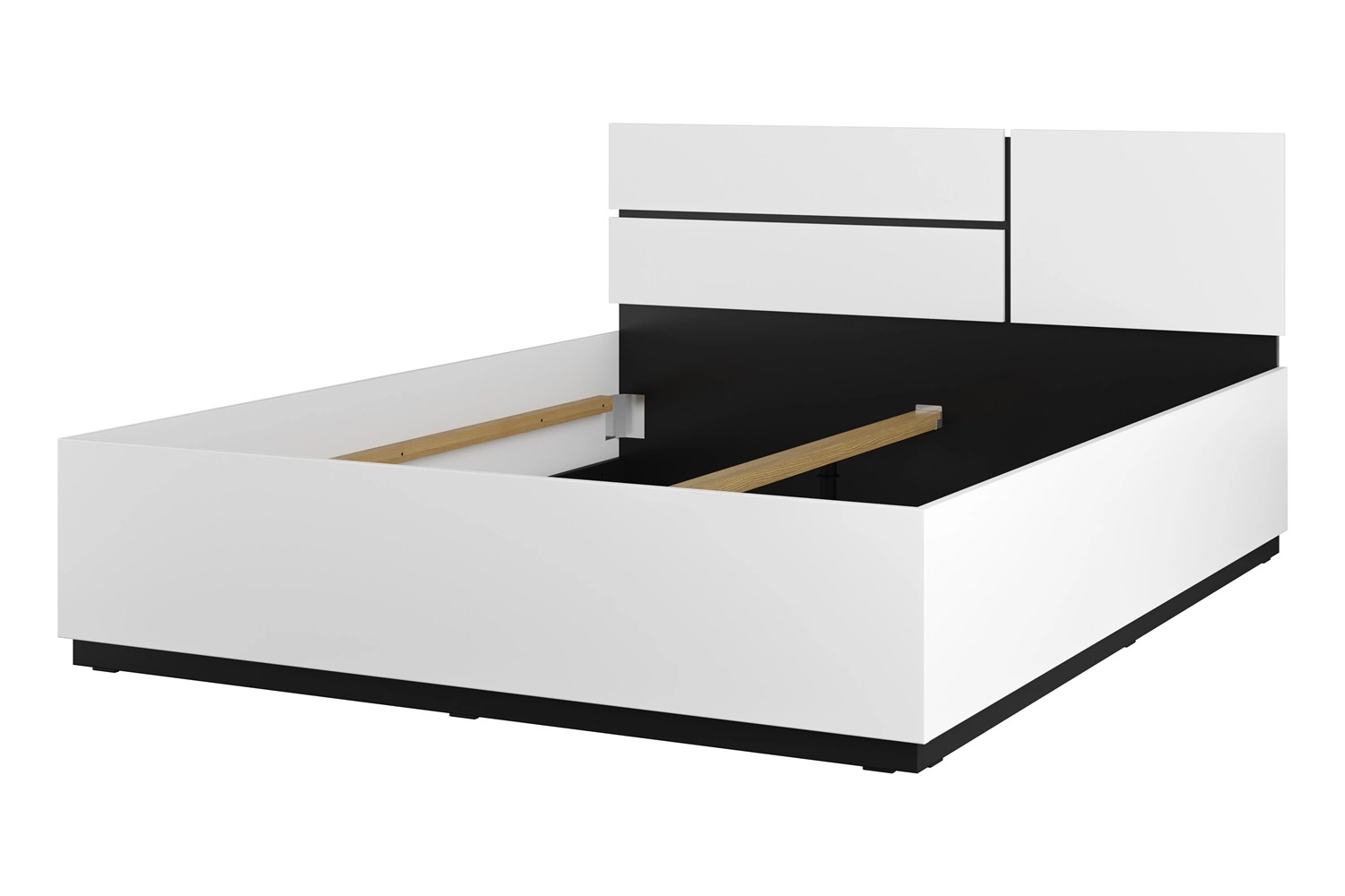 Łóżko Cross zachwyci wszystkich miłośników wyrafinowanych aranżacji. Mebel wyróżnia się prostotą oraz elegancją, a także zaskakuje szeroką funkcjonalnością. Oryginalna kolorystyka i geometryczny kształt stworzy niepowtarzalny klimat w każdym wnętrzu. Kultowa biel znakomicie współgra z wstawkami w kolorze czarnym nadając meblom nowoczesnego wyglądu i kontrastu. Dzięki wysokiemu oparciu łóżko zyskuje kolejną funkcję. Można wygodnie siedzieć na łóżku, np. oglądając telewizję, pracując przy laptopie lub czytając książki.