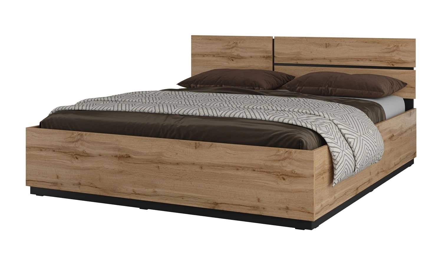 Łóżko z pojemnikiem Cross 180x200 cm w kolorze dąb wotan to prosty i elegancki design, który idealnie wpisuje się w obecne trendy wnętrzarskie.