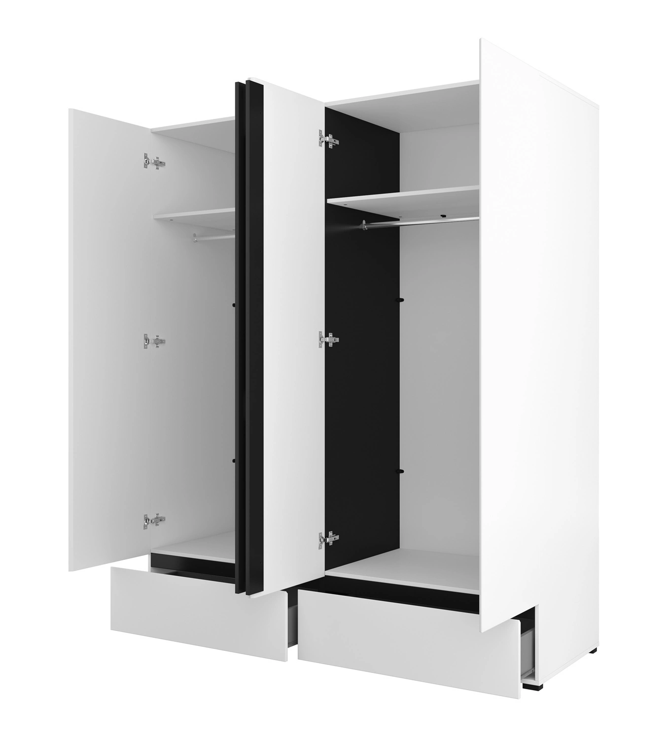 Zestaw mebli do sypialni Cross zostały zaprojektowane w sposób funkcjonalny i użytkowy, oferując dużo miejsca do przechowywania. Biały kolor nada pomieszczeniu lekkości i przytulnego klimatu, dzięki czemu meble Cross świetnie sprawdzą się jako komplet mebli do sypialni lub jako meble do pokoju młodzieżowego.