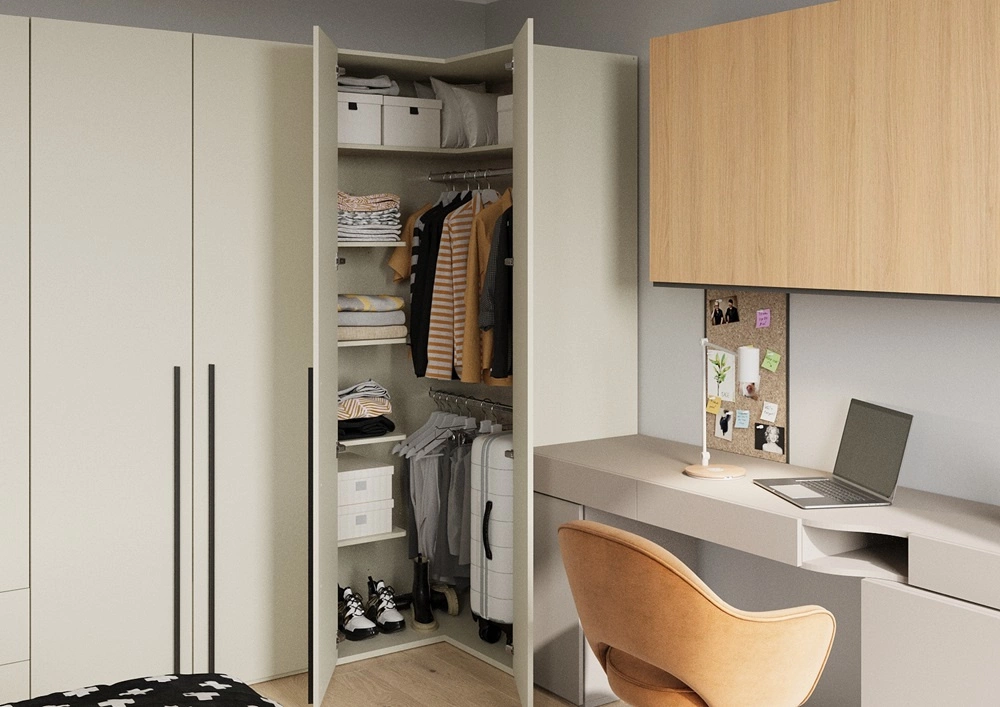 Szafa narożna Woow to modny mebel, który doskonale sprawdzi się w pokoju młodzieżowym.
