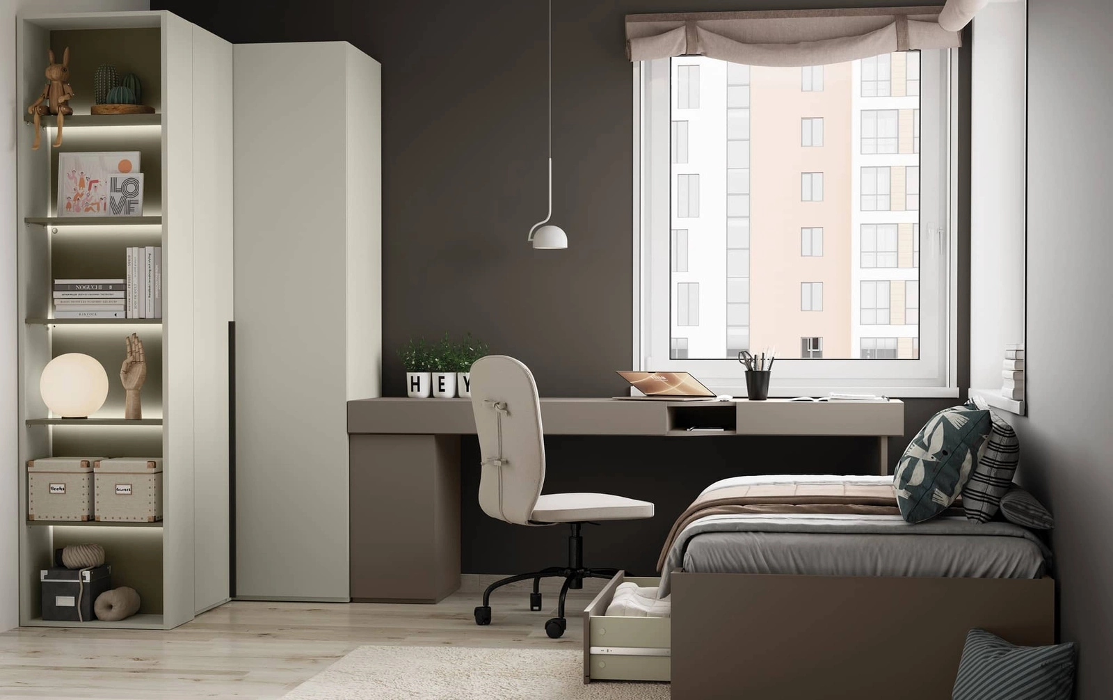 Zestaw mebli Woow pomoże w uprządkowaniu akcesoriów oraz wszystkich niezbędnych rzeczy w pokoju, dodatkowo czyniąc wnętrze lepiej zorganizowanym oraz zapewni komfortową strefę do nauki. Obecność mebli stanie się stylowym wykończeniem pokoju młodzieżowego lub pokoju dla dziecka nadając charakteru i niepowtarzalnego klimatu. Designerski styl to zasługa modnych, oryginalnych kolorów i nieoczywistej formy, które dodają aranżacji estetycznego wyglądu, a także industrialnego klimatu. Dzięki uniwersalności i wysokiej funkcjonalności bryły z zestawu mebli Woow można łatwo ustawić w niemal każdym miejscu w pomieszczeniu.