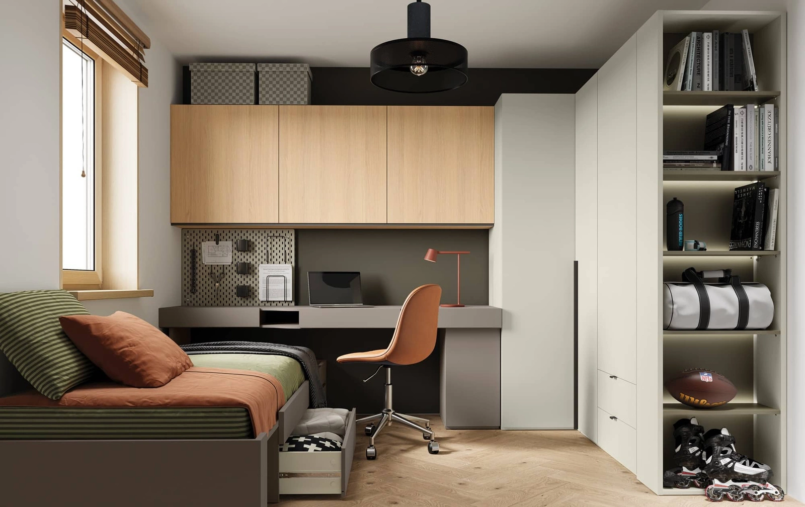 Zestaw mebli Woow pomoże w uprządkowaniu akcesoriów oraz wszystkich niezbędnych rzeczy w pokoju, dodatkowo czyniąc wnętrze lepiej zorganizowanym oraz zapewni komfortową strefę do nauki. Obecność mebli stanie się stylowym wykończeniem pokoju młodzieżowego lub pokoju dla dziecka nadając charakteru i niepowtarzalnego klimatu. Designerski styl to zasługa modnych, oryginalnych kolorów i nieoczywistej formy, które dodają aranżacji estetycznego wyglądu, a także industrialnego klimatu. Dzięki uniwersalności i wysokiej funkcjonalności bryły z zestawu mebli Woow można łatwo ustawić w niemal każdym miejscu w pomieszczeniu.