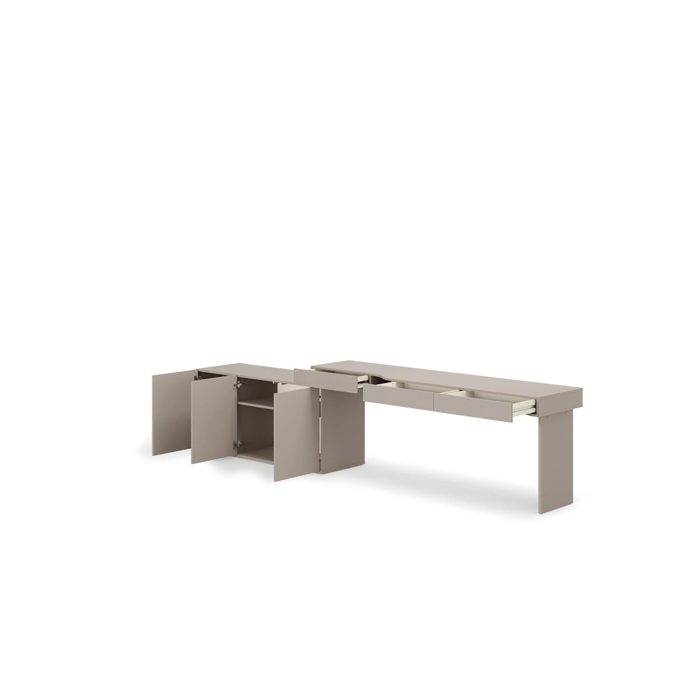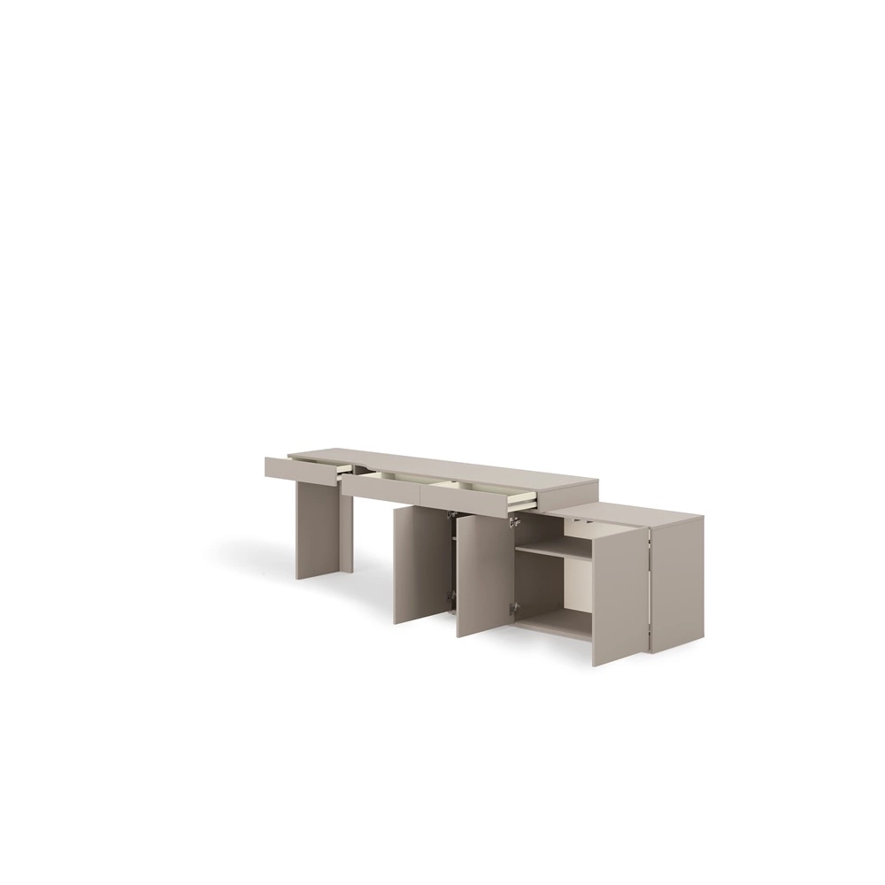 Biurko z komodą Woow 301 cm clay grey prawe funkcjonalne biurko młodzieżowe z możliwością obustronnego oraz narożnego montażu