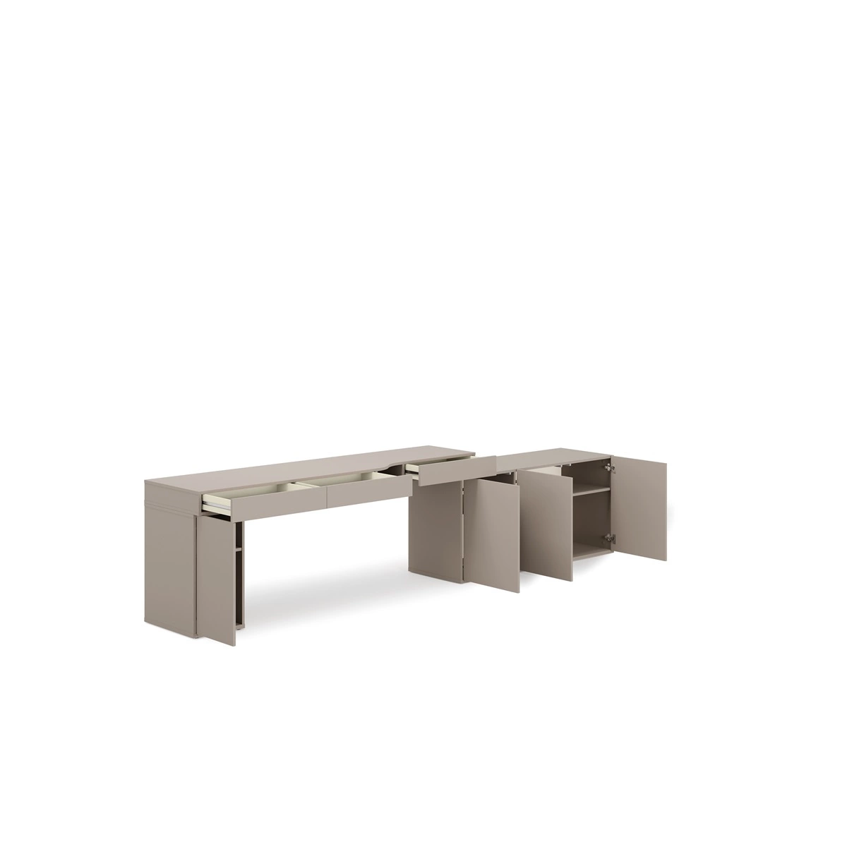 Biurko z kontenerkiem i komodą Woow 321 cm clay grey lewe praktyczne i uniwersalne biurko z szufladami z opcją obustronnego montażu