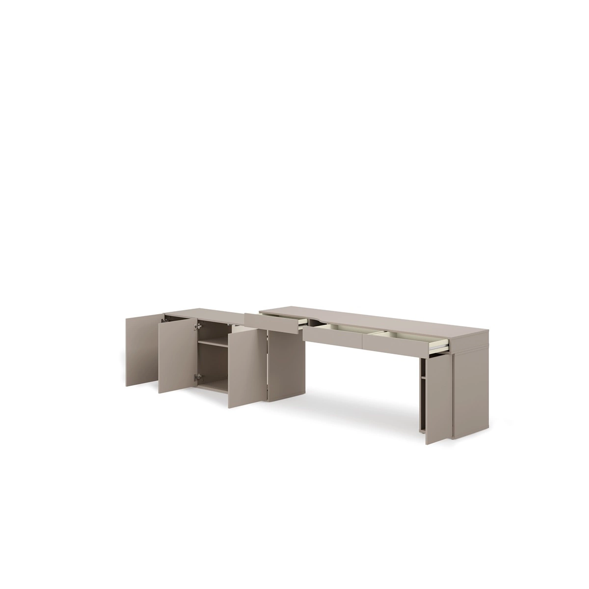 Biurko z kontenerkiem i komodą Woow 321 cm clay grey prawe praktyczne i uniwersalne biurko z szufladami z opcją obustronnego montażu