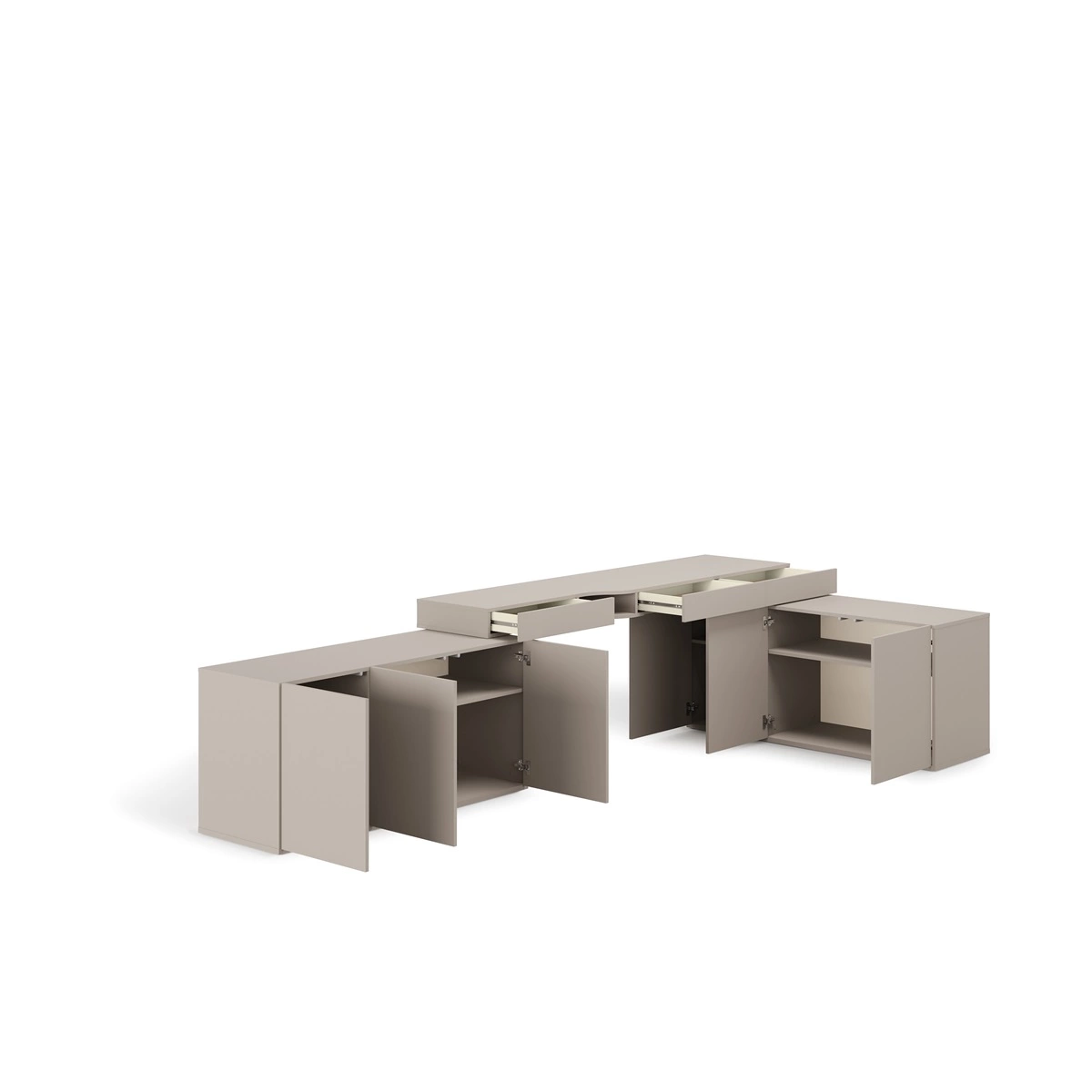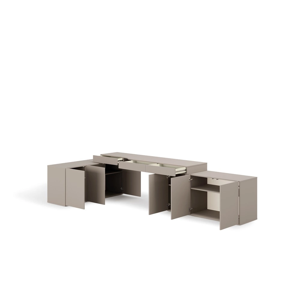 Biurko narożne Woow 338x141 cm clay grey prawe uniwersalne biurko z szufladami z opcją obustronnego montażu duże szafki w zestawie