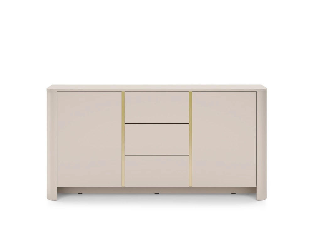 Komoda z szufladami Bari 168 cm beżowa nowoczesny design komody do salonu owalny kształt przyciąga wzrok złote dodatki