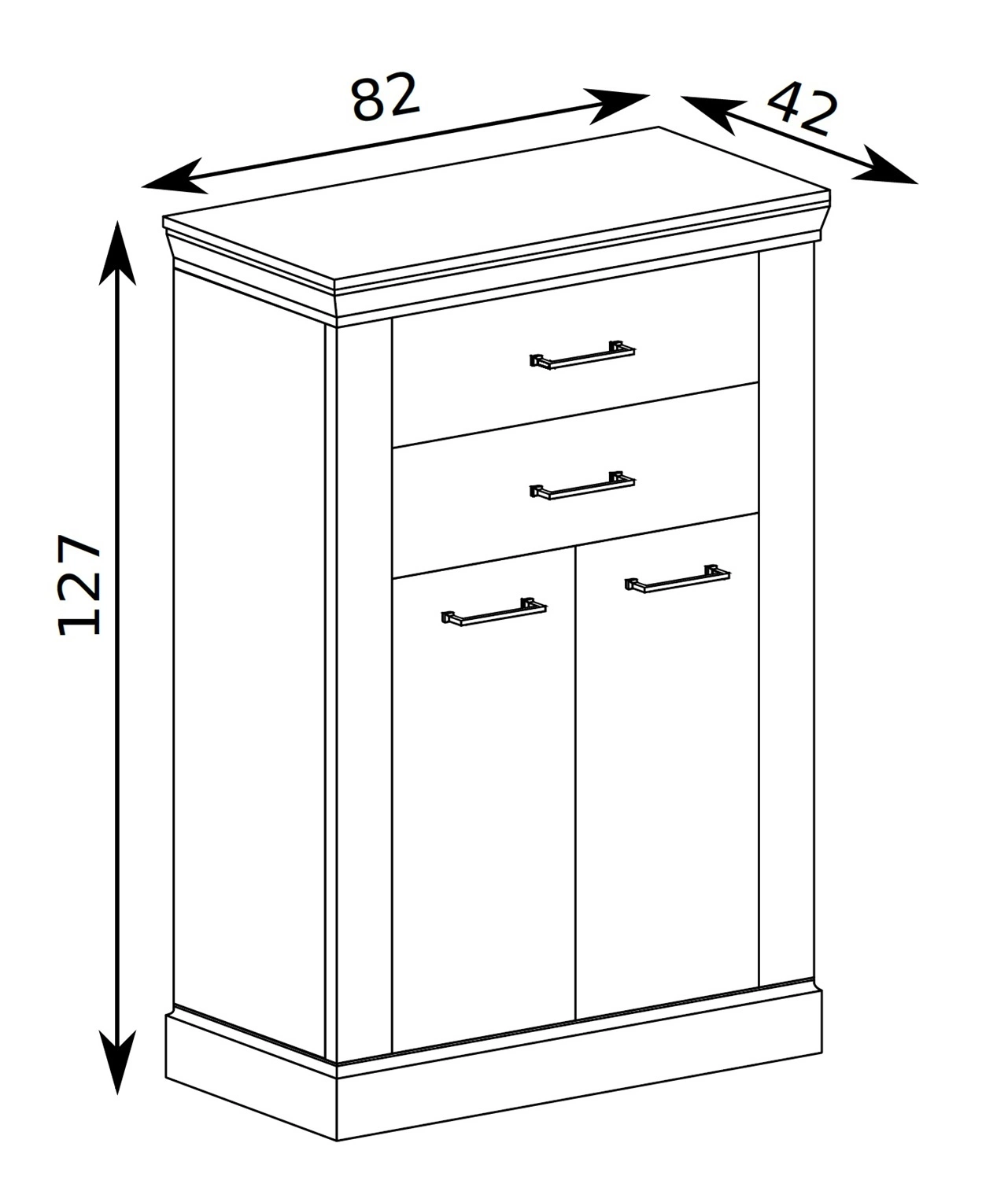 Komoda do salonu skonstruowana jest z 2 drzwi oraz 2 szuflad. Drzwi posiadają systemem cichego domykania. Zastosowany system zwiększa komfort i bezpieczeństwo użytkowania mebli. Komoda do salonu gwarantuje komfortowe i bezproblemowe korzystanie oraz trwałość całego mebla przez wiele lat użytkowania. Ciepłe wybarwienie dębu nada pomieszczeniu lekkości i przytulnego klimatu, dzięki czemu komoda z szufladami Antica świetnie sprawdzi się w roli komody do salonu lub komody do pokoju dziennego. Komoda z powodzeniem odnajdzie się także jako mebel biurowy lub komoda do sypialni.