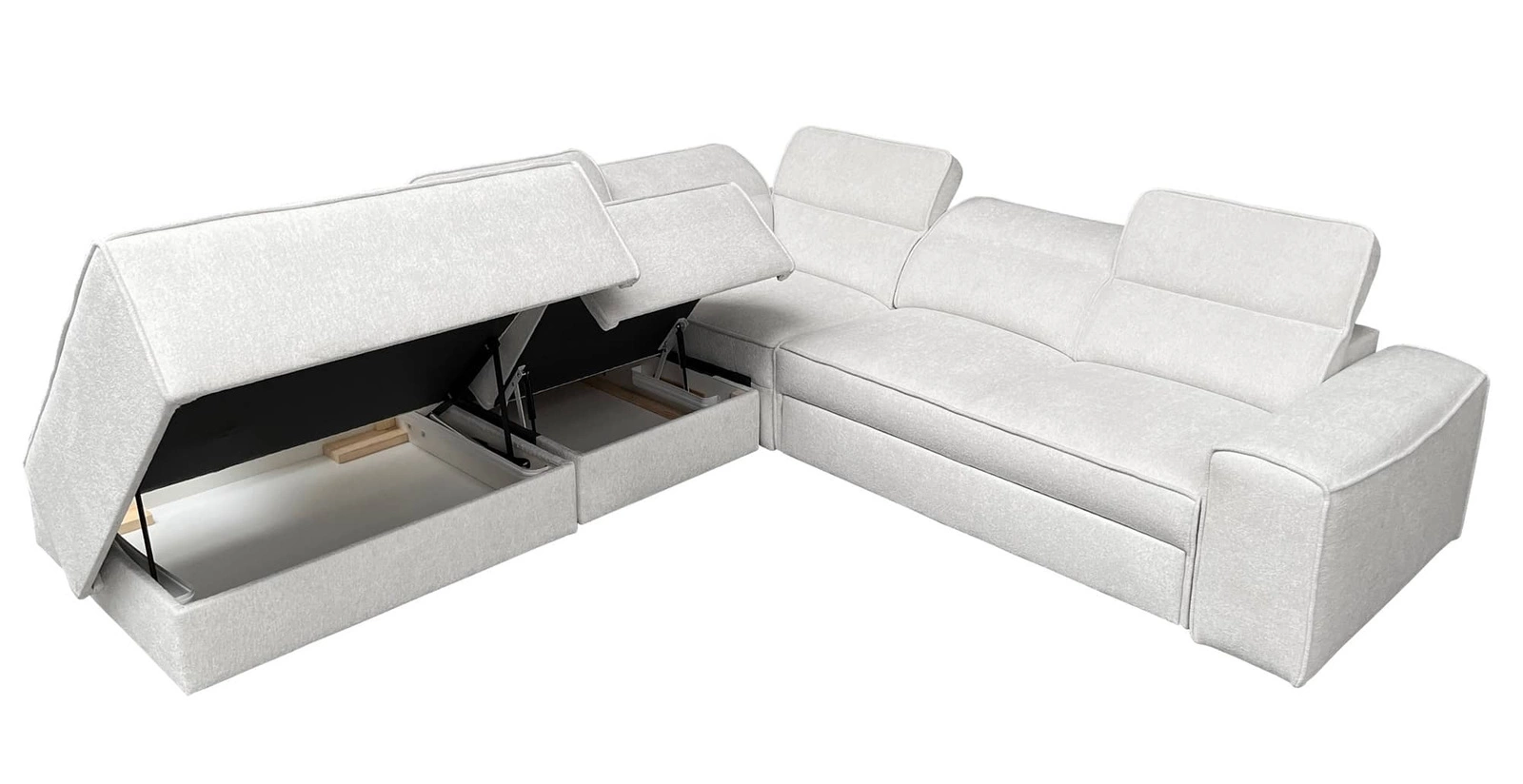 Dodatki tego mebla, które docenią wszyscy użytkownicy to pojemniki na pościel, regulowane zagłówki, szerokie podłokietniki oraz poduszki ozdobne w różnych kształtach.