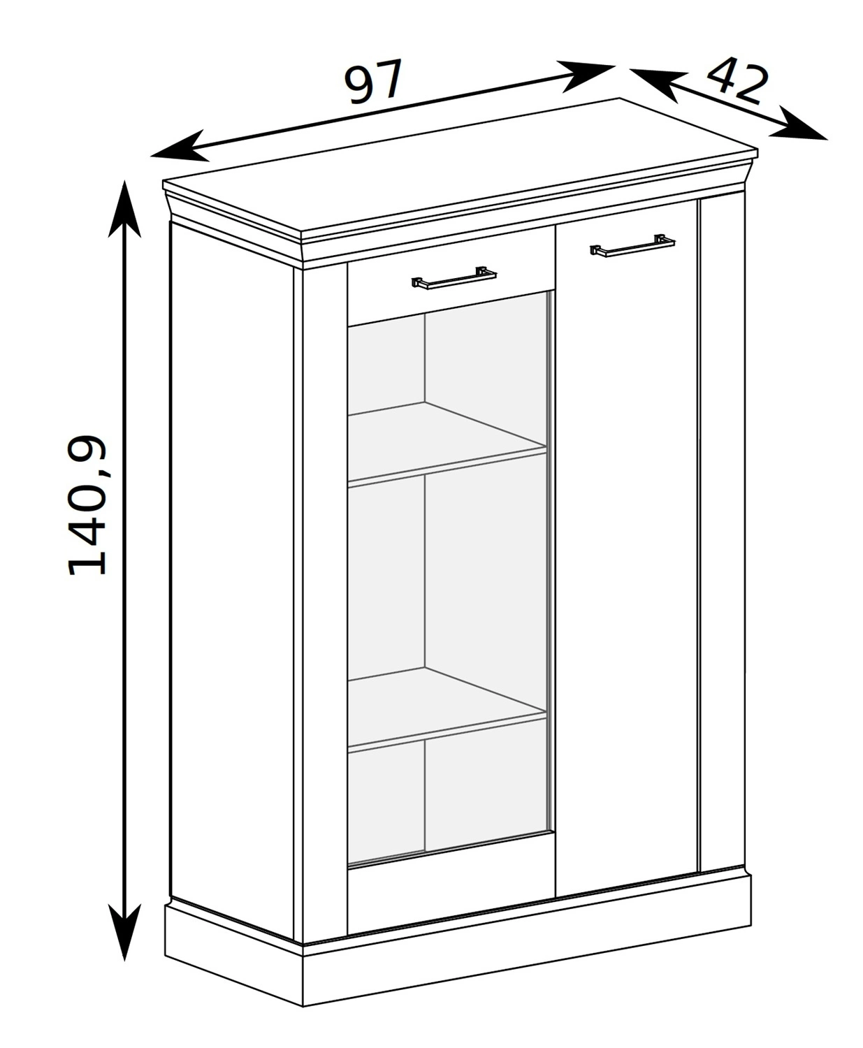 Witryna niska z kolekcji Antica to idealna propozycja dla osób ceniących klasyczne aranżacje. Modna kolorystyka i staranne wykończenie witryny nada wnętrzu elegancji i estetycznego wyglądu. Metalowy uchwyt w kolorze srebrnym to element, który przyciągają wzrok i sprawia, że całość prezentuje się bardzo gustownie. Witryna niska Antica z powodzeniem odnajdzie się we wnętrzach w stylu klasycznym oraz rustykalnym.