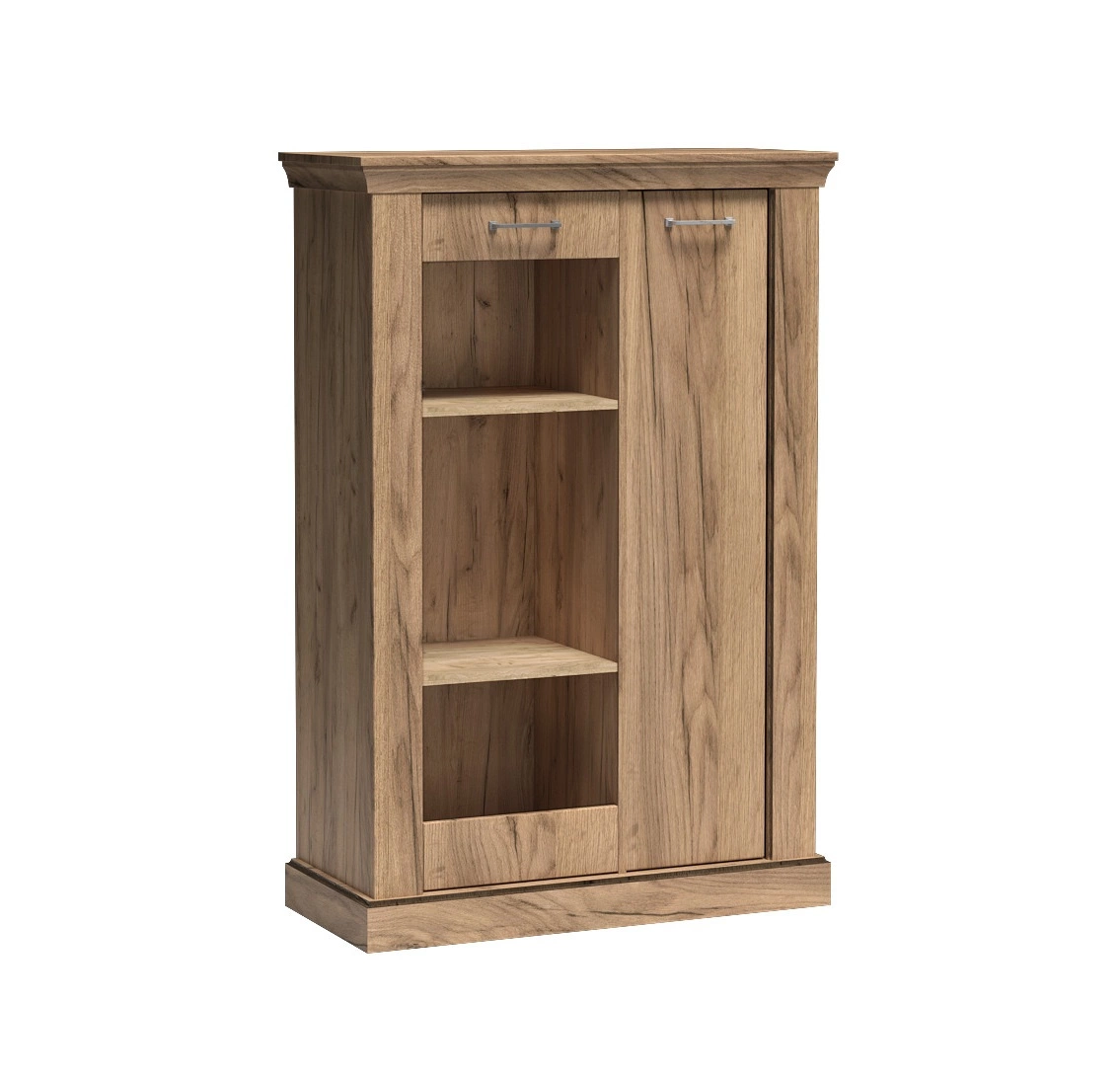Witryna niska Antica 97 cm dąb craft złoty witryna do salonu o rustykalnym charakterze metalowe srebrne uchwyty