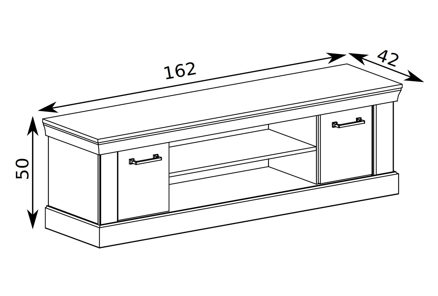 Szafka RTV z kolekcji Antica to idealna propozycja dla osób ceniących klasyczne aranżacje. Modna kolorystyka i staranne wykończenie szafki nada wnętrzu elegancji i estetycznego wyglądu. Metalowy uchwyt w kolorze srebrnym to element, który przyciągają wzrok i sprawia, że całość prezentuje się bardzo gustownie. Szafka RTV Antica z powodzeniem odnajdzie się we wnętrzach w stylu klasycznym oraz rustykalnym.