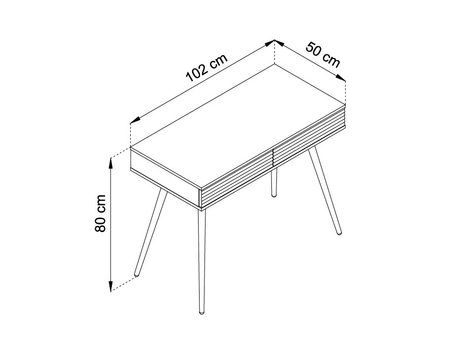 Mebel jest skonstruowany z 2 szuflad z systemem pełnego wysuwu. Dzięki swojej formie oraz uniwersalności konsola świetnie sprawdzi się jako toaletka, a także jako biurka do biura domowego