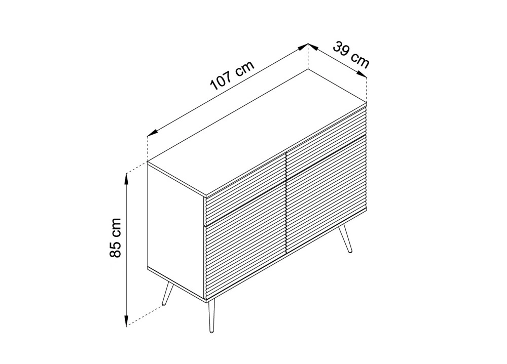 Obecność komody z szufladami stanie się stylowym wykończeniem pomieszczenia oraz nada mu szczególnego charakteru. Prosty kształt mebla idealnie komponuje się z minimalistycznym designem. Korpus komody do salonu jest wykonany z wysokiej jakości płyty laminowanej, która charakteryzuje się wysoką odpornością na wpływ czynników zewnętrznych. Stylowe ryflowane fronty wykonane z trwałej płyty MDF. Do otwierania drzwi i szuflad komody zastosowano bezuchwytowy system push to open. Komoda do salonu Luxury jest atrakcyjna pod względem wizualnym oraz funkcjonalnym.