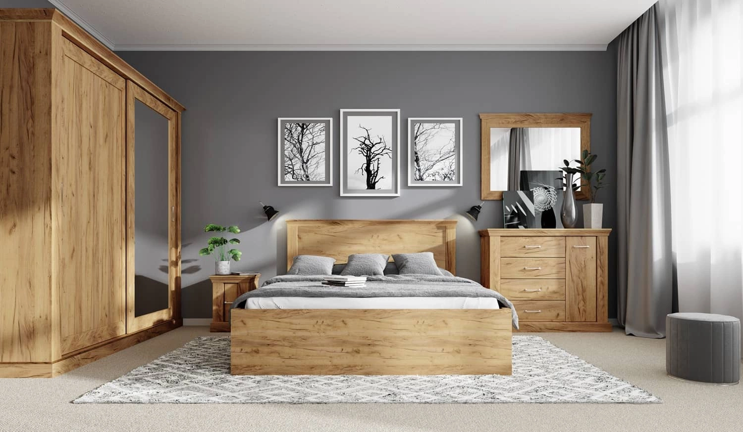 Zestaw mebli do sypialni Antica w kolorze dąb craft złoty to klasyczny design mebla, który stanie się stylowym wykończeniem wnętrza.