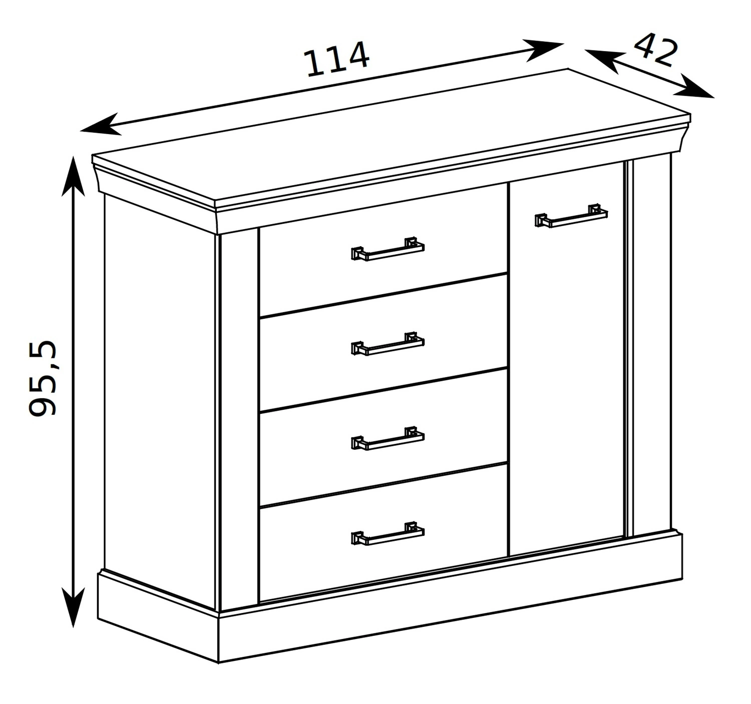 Zestaw mebli do sypialni Antica to idealna propozycja dla osób ceniących klasyczne aranżacje. Modna kolorystyka i staranne wykończenie mebli nada wnętrzu elegancji i estetycznego wyglądu. Metalowy uchwyt w kolorze srebrnym to element, który przyciągają wzrok i sprawia, że całość prezentuje się bardzo gustownie. Obecność mebli z kolekcji Antica stanie się stylowym wykończeniem sypialni oraz nada niepowtarzalnego klimatu. Komplet mebli z powodzeniem odnajdzie się we wnętrzach w stylu klasycznym oraz rustykalnym.