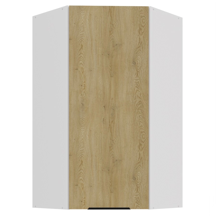 Szafka kuchenna narożna wisząca Cremona w kolorze biały / dąb cremona należy do kategorii mebli kuchennych modułowych, z których można utworzyć dowolne zestawy.