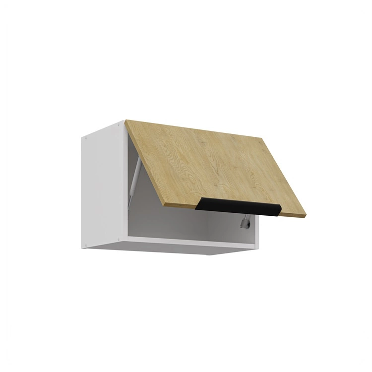 Korpus i fronty szafki kuchennej są wykonane z wysokiej jakości płyty laminowanej o grubości 16 mm. Zaletą tego rodzaju materiałów jest wysoka odporność na wpływ zewnętrznych czynników takich jak para wodna, wysoka temperatura, wilgoć, rozlane ciecze. Użyty materiał jest także odporny na przypadkowe uszkodzenia. Stylowym dopełnieniem frontów szafki kuchennej jest czarny, metalowy uchwyt krawędziowy, który poza swoją podstawową funkcją podkreśla również nowoczesny design szafki.