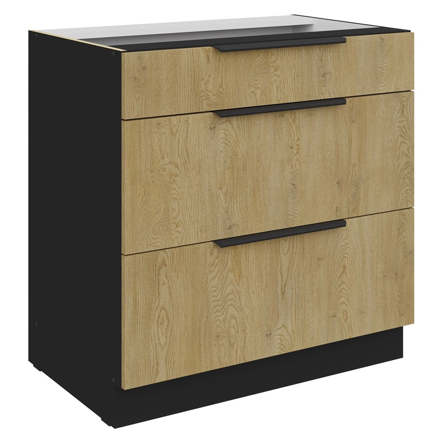 Szafka kuchenna z szufladami 80 cm Crotone w kolorze czarny / dąb cremona należy do kategorii mebli kuchennych modułowych, z których można utworzyć dowolne zestawy.