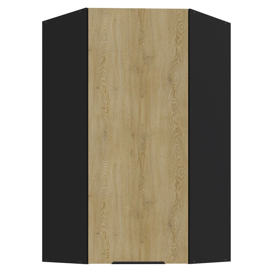 Szafka kuchenna narożna wisząca Crotone w kolorze czarny / dąb cremona należy do kategorii mebli kuchennych modułowych, z których można utworzyć dowolne zestawy.