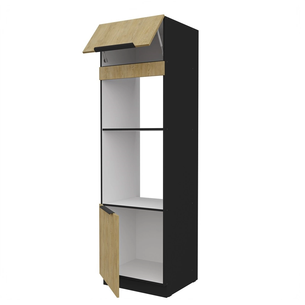 Słupek kuchenny do zabudowy piekarnika i mikrofali 60 cm Crotone w kolorze czarny / dąb cremona należy do kategorii mebli kuchennych modułowych, z których można utworzyć dowolne zestawy.