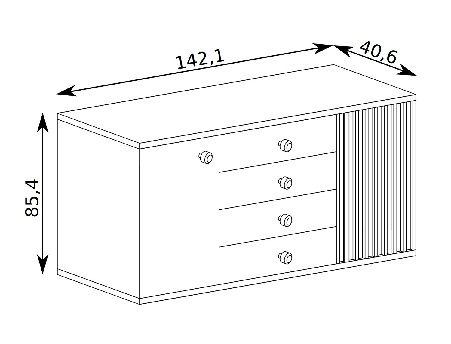 - Zestaw mebli Cali to nowoczesne i stylowe rozwiązanie dla osób ceniących zarówno funkcjonalność, jak i estetykę. Dodatkowym atutem są ozdobne lamele w kolorze drewna zdobiące meble, które podkreślą styl i elegancję brył.