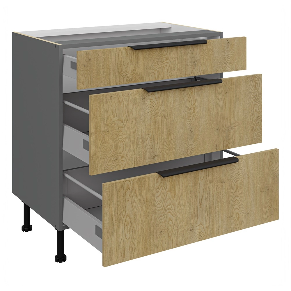 Szafka kuchenna z szufladami 80 cm Corsico w kolorze antracyt / dąb cremona należy do kategorii mebli kuchennych modułowych, z których można utworzyć dowolne zestawy.