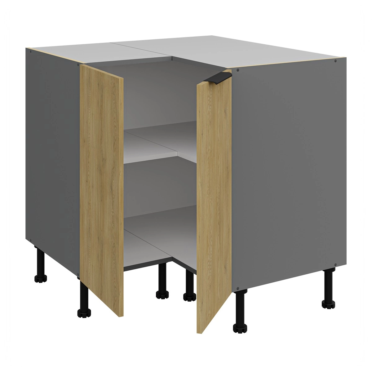 Szafka kuchenna narożna stojąca Corsico w kolorze antracyt / dąb cremona należy do kategorii mebli kuchennych modułowych, z których można utworzyć dowolne zestawy.