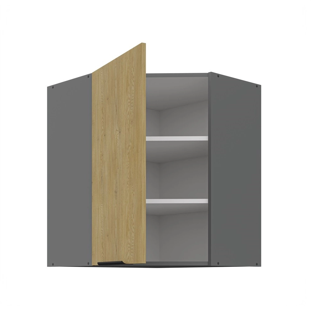 Szafka kuchenna narożna wisząca Corsico w kolorze antracyt / dąb cremona należy do kategorii mebli kuchennych modułowych, z których można utworzyć dowolne zestawy.